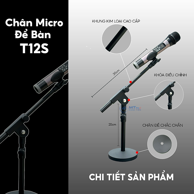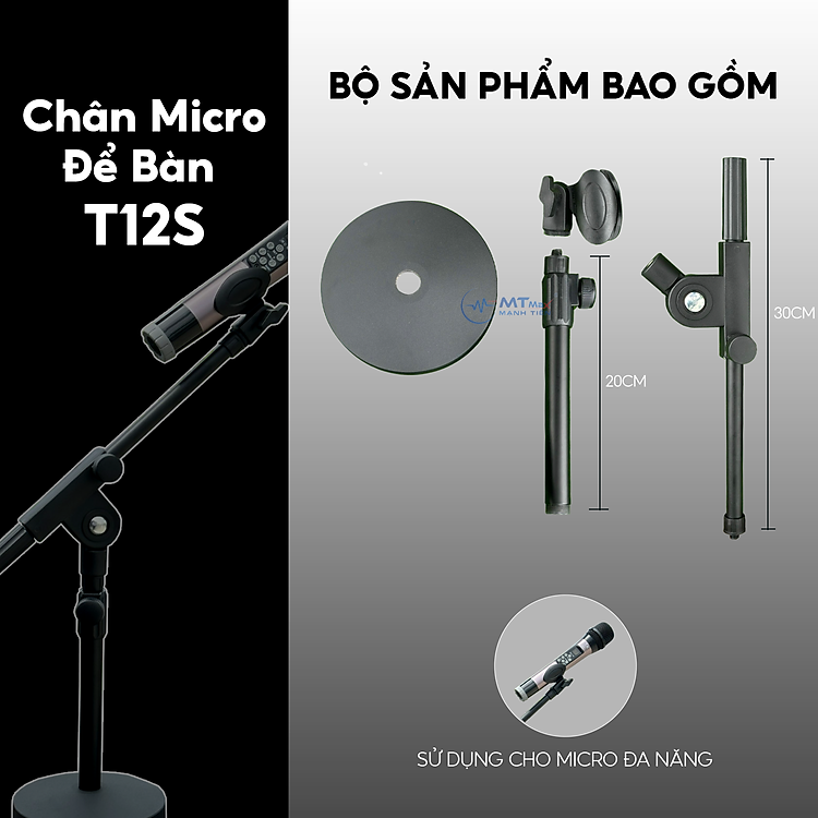Bộ Chân Micro Để Bàn T12S - Giá Đỡ Micro Kim Loại Để Bàn Sử Dụng Cho Nhiều Loại Microphone Đa Năng, Có Thể Điều Chỉnh Chiều Cao Và Góc Độ Rất Thuận Tiện.