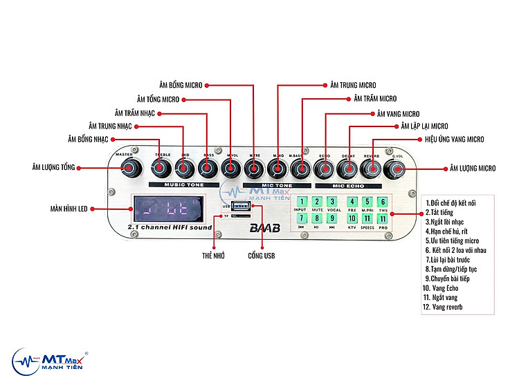 với thiết kế 7 loa 3 đường tiếng phong cách hiện đại, thiết kế tinh tế, hệ thống echo, bass, treb, Reverb mạnh mẽ và chuyên nghiệp, hứa hẹn sẽ mang đến cho người dùng những trải nghiệm âm thanh tuyệt vời nhất.