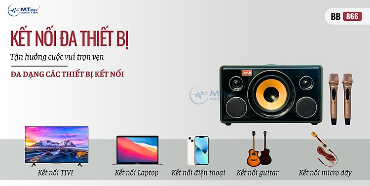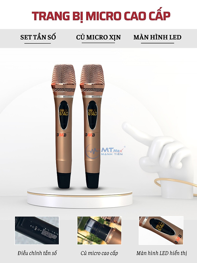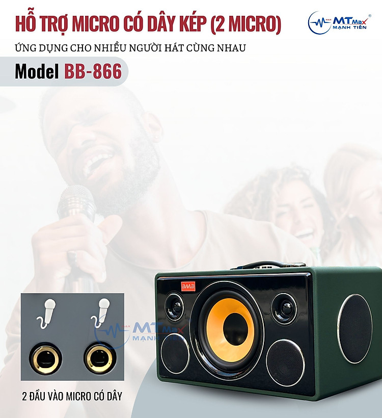 Để hỗ trợ tối đa nhu cầu hát karaoke của người dùng thì hãng đã bổ sung thêm một cặp micro không dây đi kèm loa BB866. Được làm bằng chất liệu Kkim loại cầm đầm tay và khả năng chống hút rít tuyệt vời, cặp micro này đem tới khả năng hỗ trợ giọng hát yếu với độ trễ thấp, đem lại không gian giải trí tuyệt vời hơn bao giờ hết.