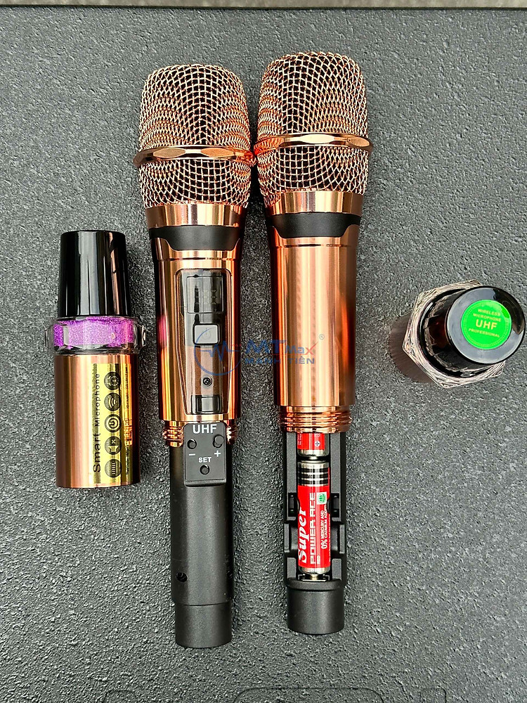 Với Loa Karaoke BK47, bạn sẽ được trải nghiệm những tính năng đặc biệt. Loa được trang bị các cổng hỗ trợ cho microphone, guitar và đèn LED báo hiệu. Loa đi kèm với 2 micro không dây, thiết kế bằng kim loại mạ màu đồng nâu, tạo nên vẻ sang trọng và chất lượng. Microphone sử dụng pin AA×2 và sóng UFH, giúp bạn thoải mái hát karaoke mà không lo bị gián đoạn.
