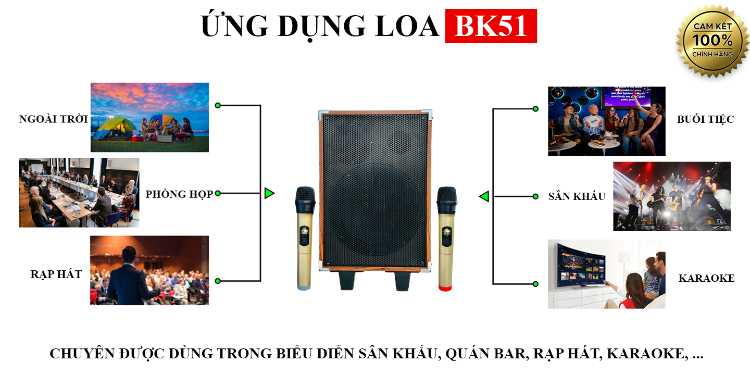 Sản phẩm là sự kết hợp hoàn hảo giữa công suất mạnh mẽ, hệ thống loa đa dạng, và kết nối tiện lợi. Với khả năng phát âm thanh chất lượng cao và thiết kế nhỏ gọn, loa BK51 là sự lựa chọn tốt để bạn thưởng thức âm nhạc và giải trí mọi lúc, mọi nơi.