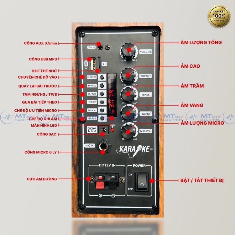 được trang bị hệ thống công suất lên đến 100W, với loa bass 20cm giúp tái tạo âm thanh cực kì chất lượng, ngoài ra còn tăng độ lực và căng của âm trầm giúp người nghe trãi nghiệm được cảm giác sung sướng khi nghe.