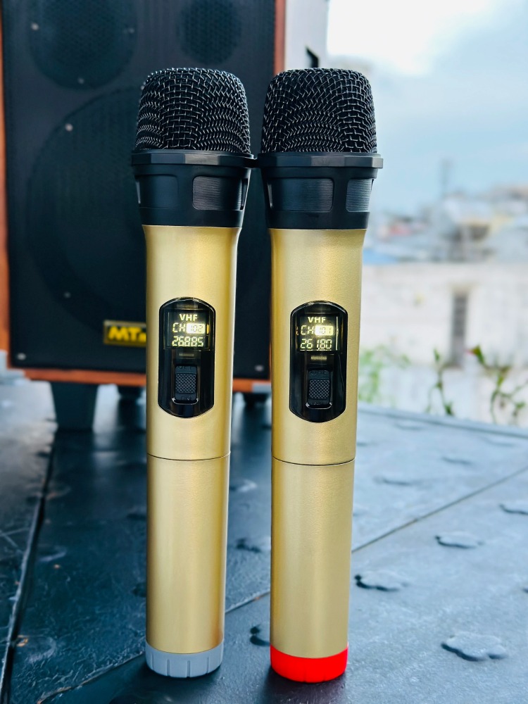 Tặng kèm 2 micro không dây đa năng giúp bạn có thể trình diễn giọng hát của mình cùng gia đình, bạn bè một cách vô cùng thuận tiện.