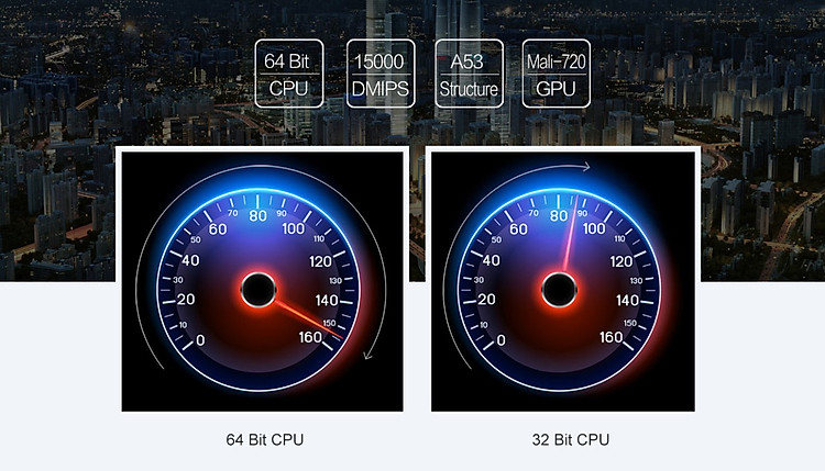 Chip độc quyền về xử lý âm thanh và hình ảnh Amlogic S905W Quad Core 64 bit tốc độ lên tới 2GHz.