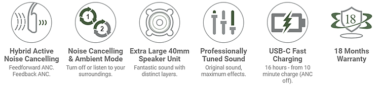 - Sạc nhanh USB-C 16 giờ - từ 10 phút sạc (tắt ANC).