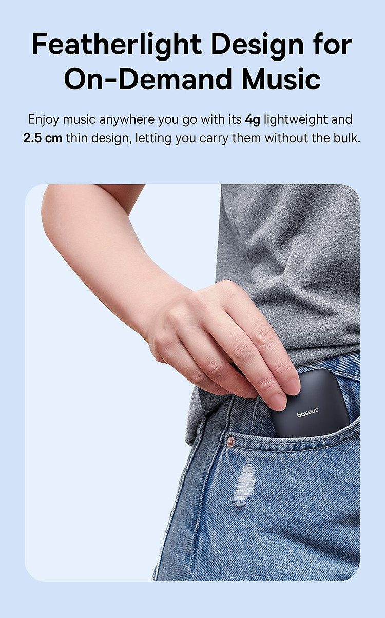 Baseus Bowie E16 cung cấp âm thanh chi tiết và sắc nét, với âm trầm mạnh mẽ, âm giữa rõ ràng và âm treble tinh tế, mang lại trải nghiệm nghe nhạc đích thực.