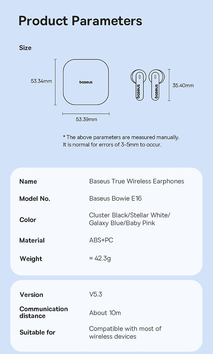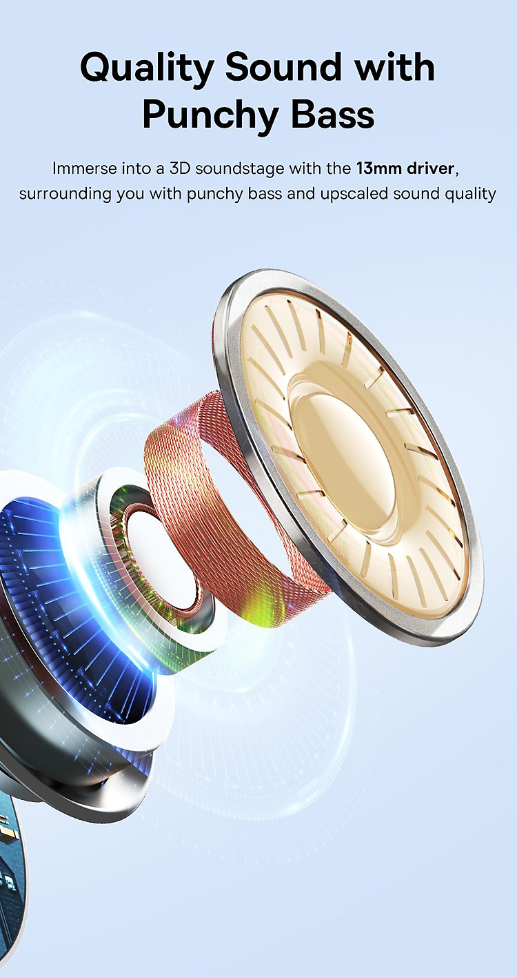 Sử dụng công nghệ Bluetooth v5.3 mới nhất, tai nghe Baseus Bowie E16 đảm bảo kết nối ổn định và tín hiệu âm nhạc chất lượng cao, mà không gặp phải sự gián đoạn.