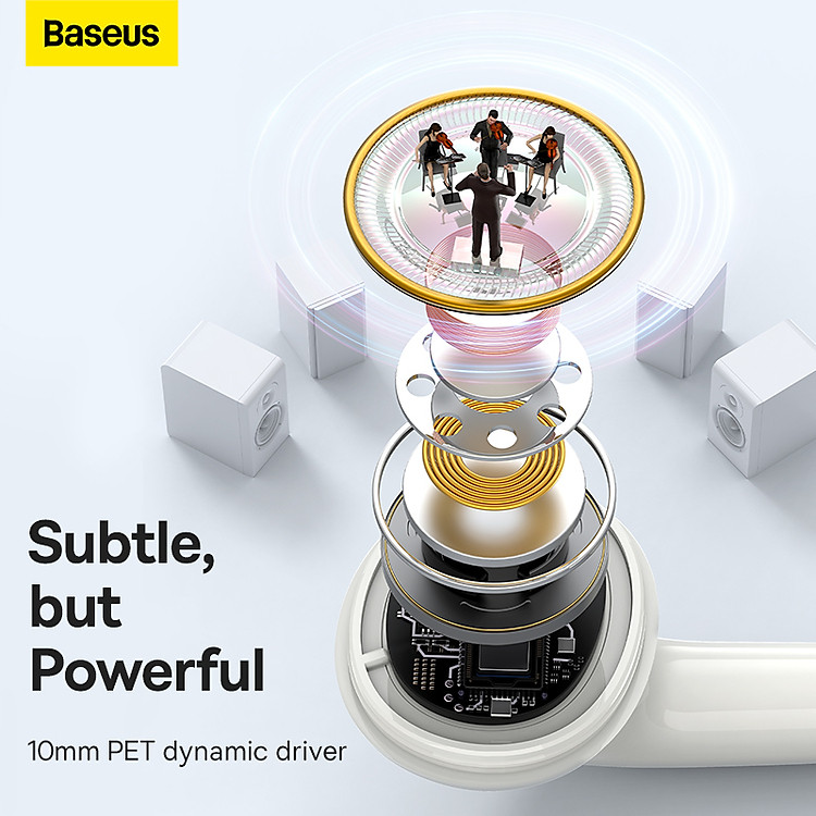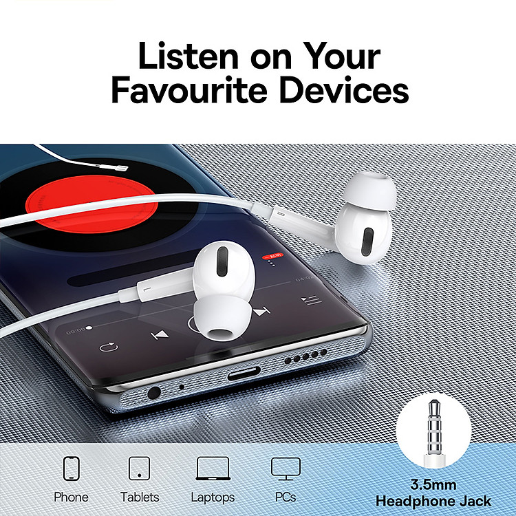 Thiết kế tai nghe Baseus Enock H18 có dạng trong tai (in-ear), với bộ đệm tai bằng silicone mềm mại và êm ái, giúp tai nghe vừa vặn và thoải mái khi đeo trong thời gian dài. Điều này cũng giúp cách âm tốt, giảm tiếng ồn từ môi trường xung quanh, cho phép bạn tập trung vào âm nhạc của mình.